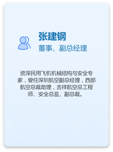 历任吉祥航空党委书记、常务副总裁,现任均瑶集团董事,上海华模科技有限公司董事长。